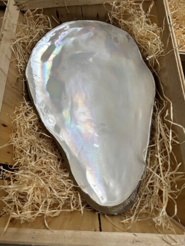 Deze oesterschaal van ca. 40 cm is een uniek, handgemaakt stuk aardewerk met een prachtige parelmoer afwerking. De subtiele glans laat oesters en andere zeevruchten schitteren op tafel. Elke schaal is met zorg gevormd en daardoor één van een soort. Verpakt in een authentieke oestermand, waardoor het niet alleen een blikvanger is tijdens het serveren, maar ook een bijzonder en origineel cadeau voor elke liefhebber van culinaire schoonheid. Elke schaal is uniek, zie detailfoto’s!
